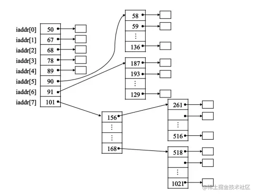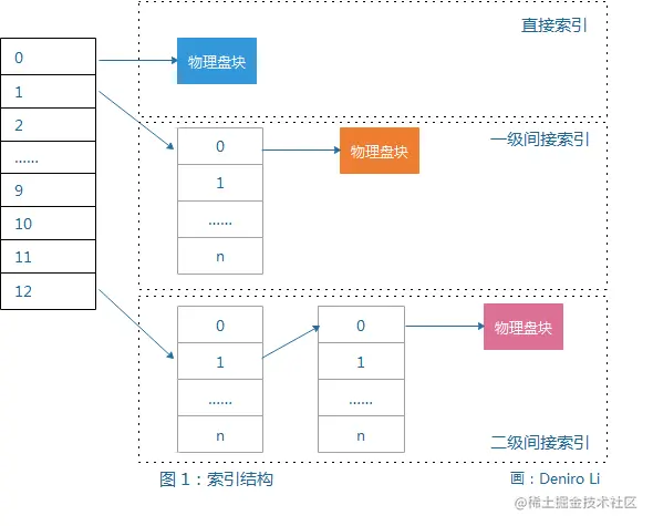 这是另一种对文件存储不连续分配的方法。采用索引分配方法的系统,为每一个文件建立一张索引表,索引表中每一表项指出文件信息所在的逻辑块号和与之对应的物理块号。索引分配既可以满足文件动态增长的要求,又可以方便而迅速地实现随机存取。对一些大的文件,当索引表的大小超过一个物理块时,会发生索引表的分配问题。一般采用多级(间接索引)技术,这时在由索引表指出的物理块中存放的不是文件而是存放文件信息的物理块地址。如果一个物理块能够存储 n 个地址,则在一级间接索引模式下,可寻址的文件长度将为【 n 的二次方 】 块。对于更大的文件可以采用二级甚至三级间接索引(例如, UNIX 操作系统采用三级索引结构)。