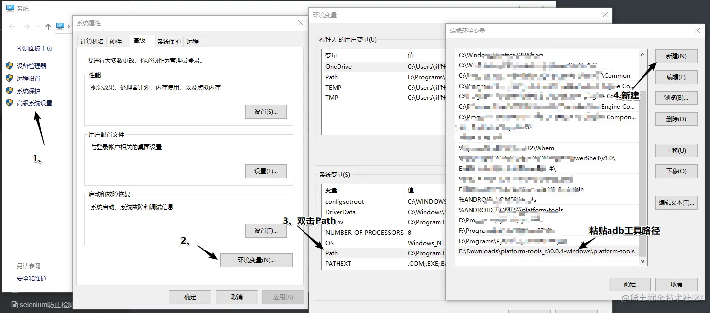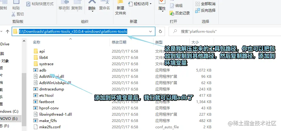 - 解压工具包,把解压出来的工具包platform-tools添加到系统环境变量