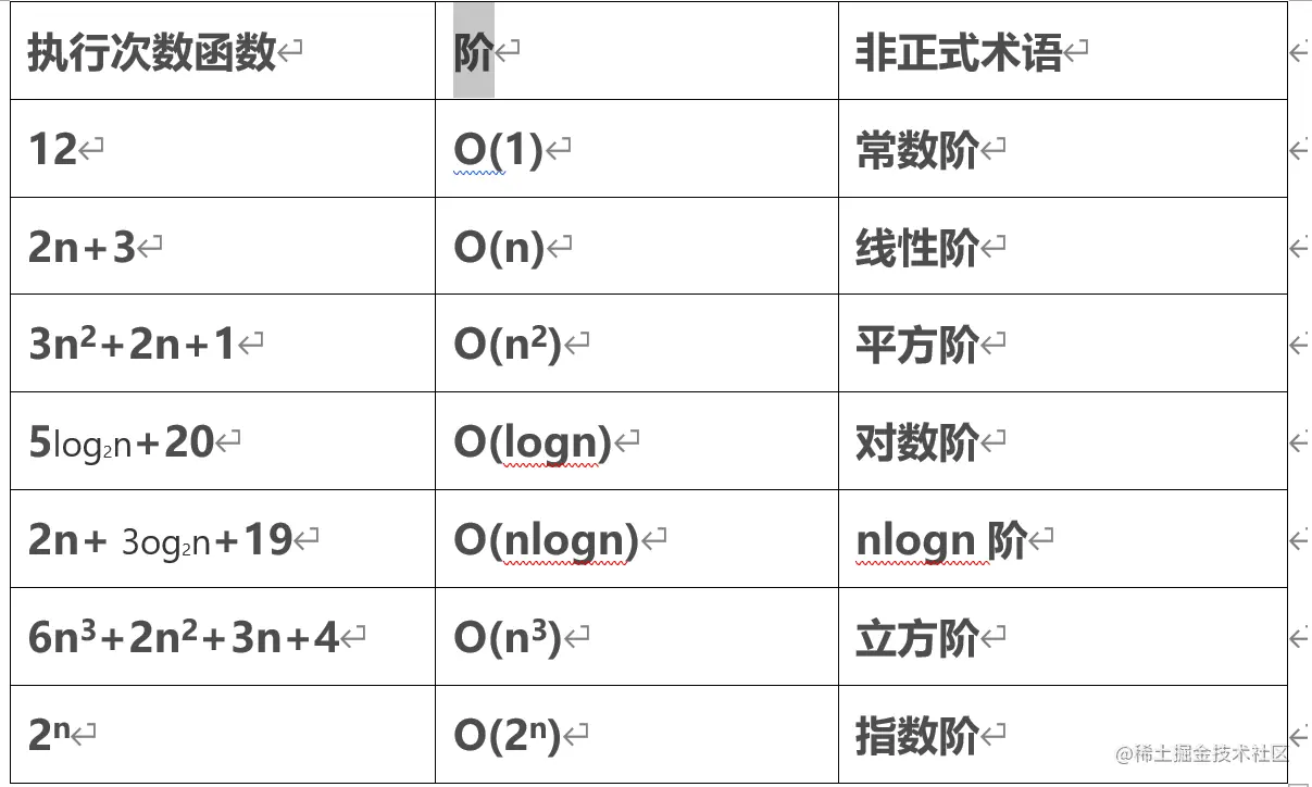 用大写O()来体现算法时间复杂度的记法,称之大O记法。O(1)叫做常数阶、O(n)叫做线性阶、O(n2)称作平方阶。
