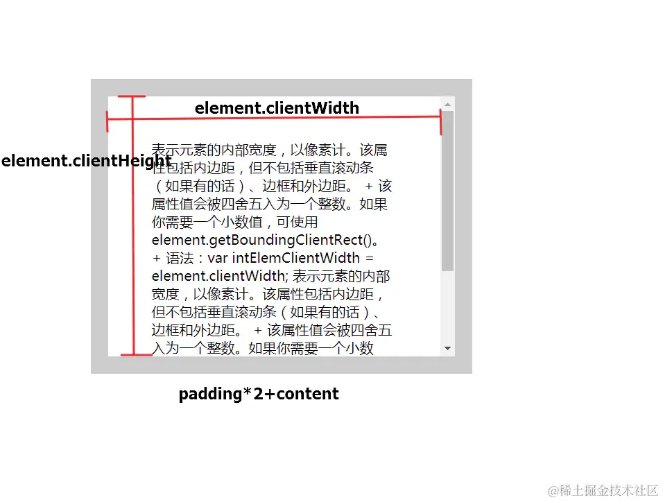- 内容展示区域 clientXXX:padding+contentWidth/Height