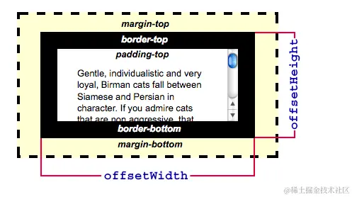 - 边框以内区域 offsetXXX:border+scrollbar+padding+contentWidth/Height