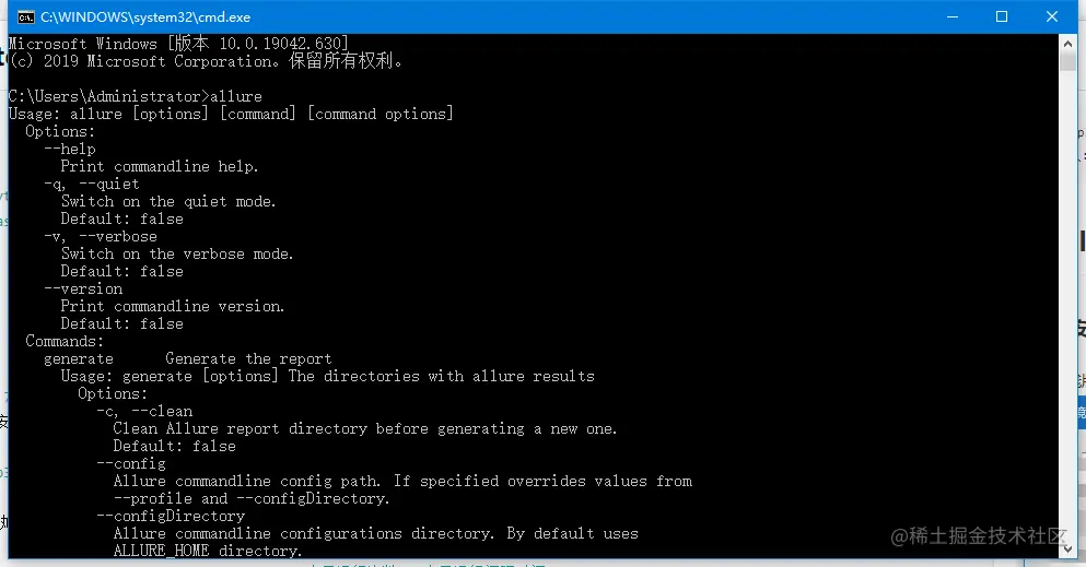 下载离线版allure后 将bin目录地址添加到系统环境变量中 后cmd中确认