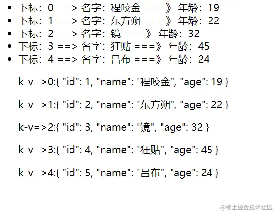 下标:{{index}} ==> 名字:{{item.name}} ===》 年龄:{{item.age}}