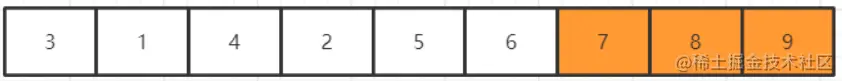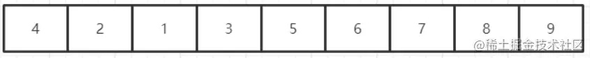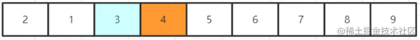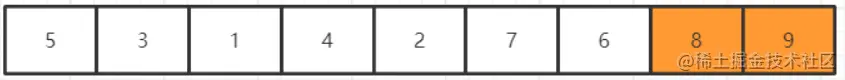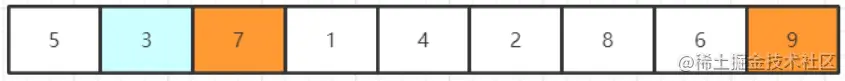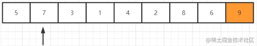 继续比较当前元素和下一个元素的大小,发现9比7大,交换之