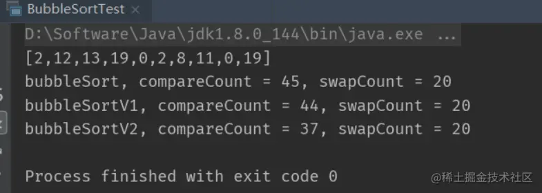 注意,无论如何优化,冒泡排序的元素交换次数是不变的,优化措施减少的只是不必要的比较次数,给出如下示例,可自行验证