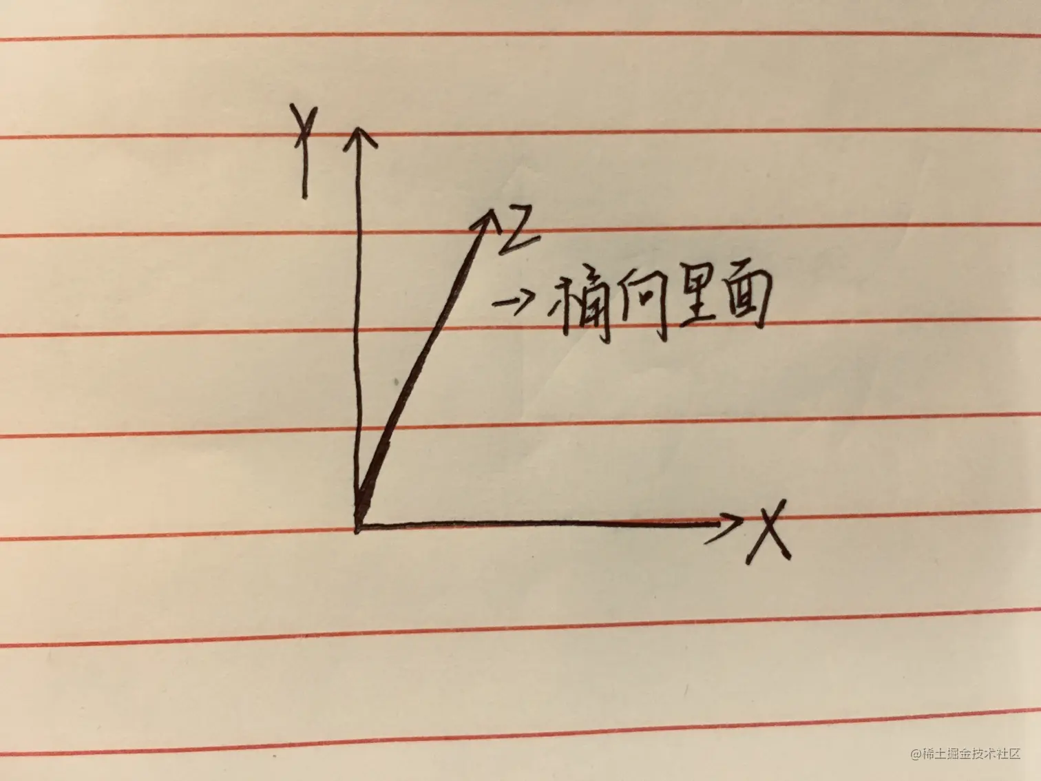 假设X轴和Y轴组成一个平面,那么Z轴如下所示: