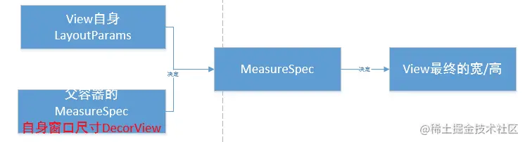 View,其MeasureSpec由父容器的MeasureSpec和自身的LayoutParams来共同决定 对于不同的父容器和view本身不同的LayoutParams,view就可以有多种MeasureSpec。- 当