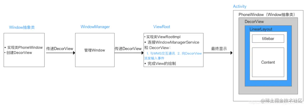 viewroot在activtiy启动时创建,负责管理、布局、渲染窗口UI等等