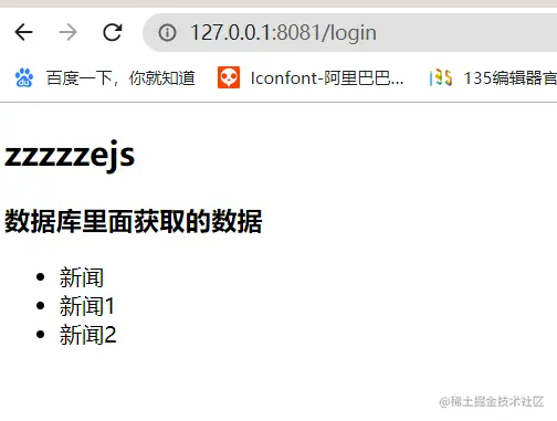 // 2、通过后端模板引擎对数据和模板文件进行渲染,得到最终返回给前端的页面
