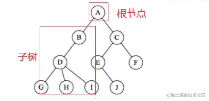 树(Tree)是n(n≥0)个结点的有限集。n=0时称为空树。在任意一棵非空树中: (1)有且仅有一个特定的称为根( Root)的结点;(2)当n>1时,其余结点可分为m(m>0)个互不相交的有限集T1、T2、.... Tm,其中每一个集合本身又是一棵树,并且称为根的子树( SubTree)。