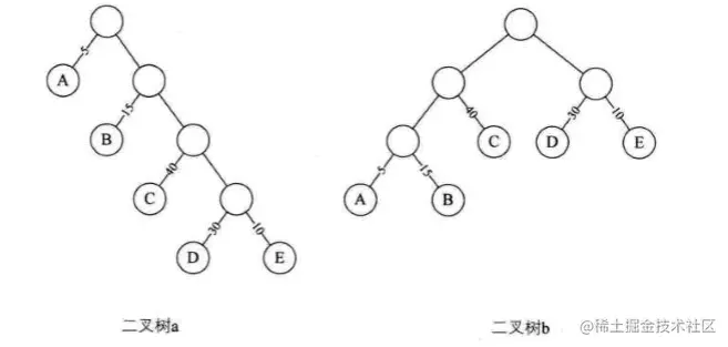 重复2和3步骤,直到F只含一棵树为止。这棵树便是赫夫曼树。