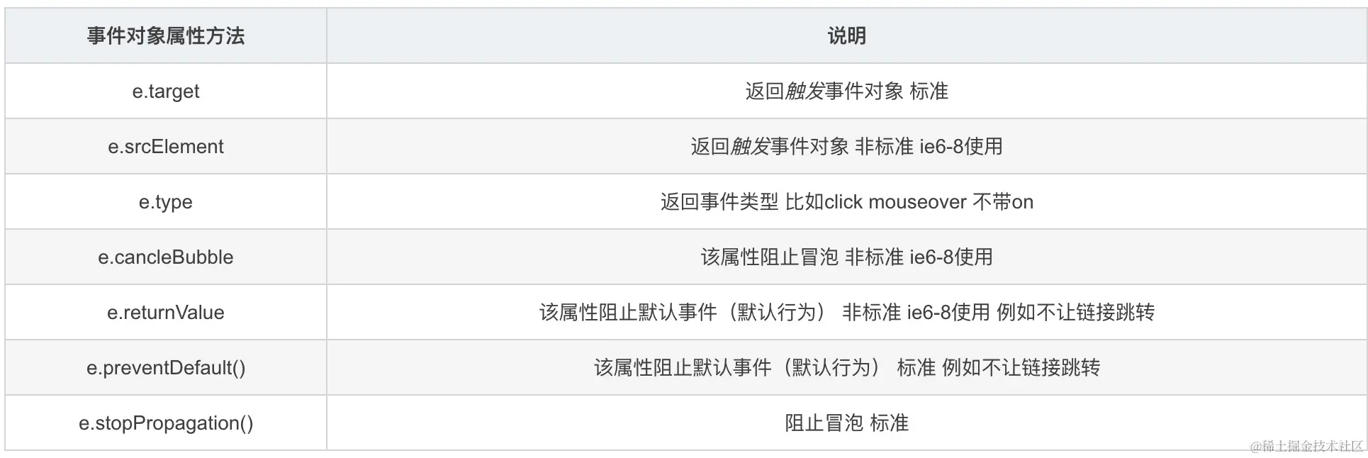 var toBtn=document.getElementById("btn"); document.body.onclick=function(event){ console.log(event.target===toBtn); //true console.log(event.currentTarget===this)//true console.log(this==document.body) }