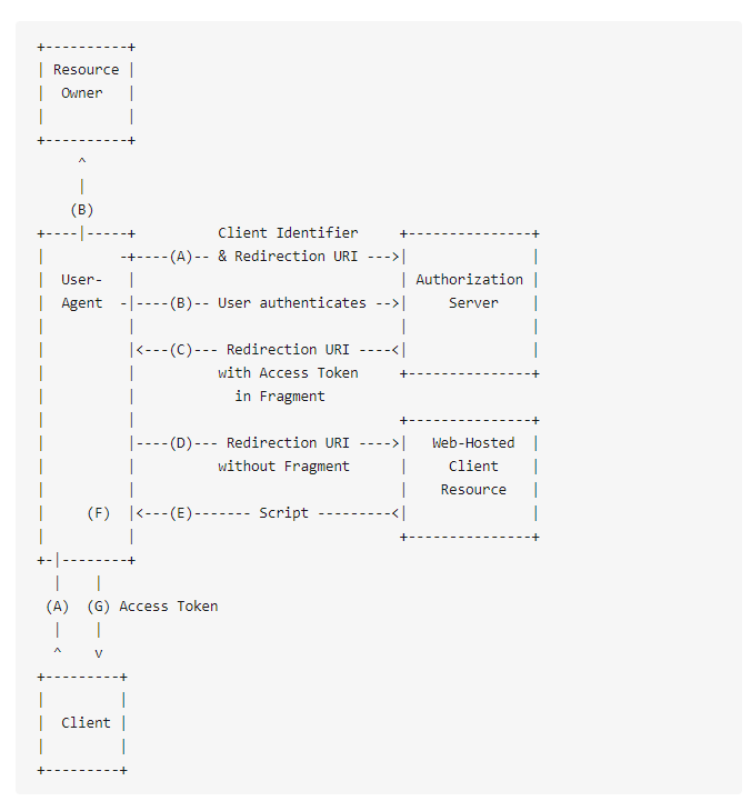 这种方式与授权码模式不同,它适用于没有服务端的情况,比如手机应用,前端直接就从SP拿到了token,但是要注意,这个token并不是像授权码模式中的code一样,拼在“?”后面,而是“#”后面,所以可以有效降低泄密的危险。