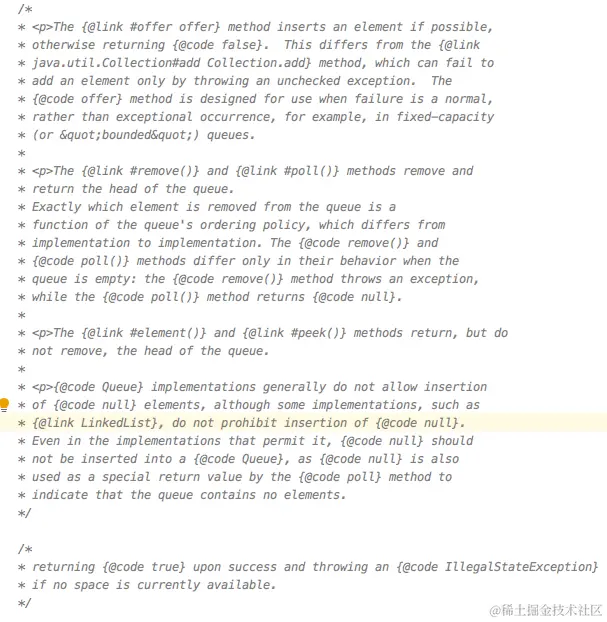 1. Queue继承自 Collection,我们先来看看api的解释