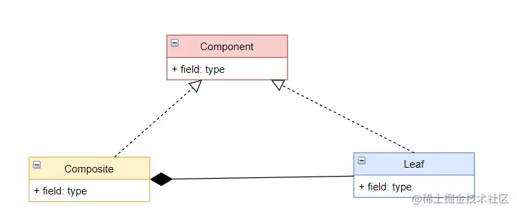 Leaf):在组合中表示结对对象,叶子节点中不能有子节点 - 合成部件(