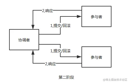 在阶段2: XA根据第一阶段每个RM是否都prepare成功,判断是要提交还是回滚。如果都prepare成功,那么就commit每个事务分支,反之则rollback每个事务分支。