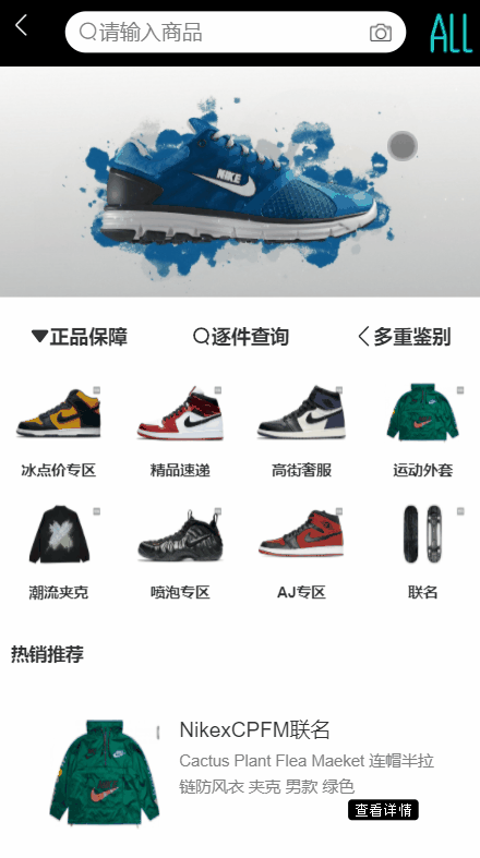 在此之外在分类页面实现了搜索功能,数据是用本地的json数据模拟的。