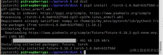 pip3 install ./torch-1.6.0a0+b31f58d-cp37-cp37m-linux_armv7l.whl