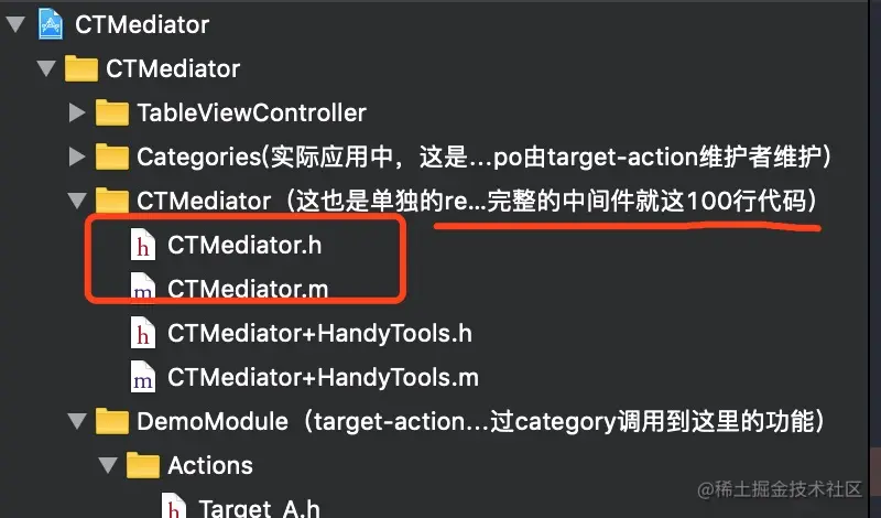 下面是本地调用的CTMediator的源代码: