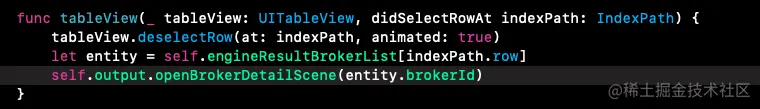 3.1 点击tableViewCell->func tableView(_ tableView: UITableView, didSelectRowAt indexPath: IndexPath)