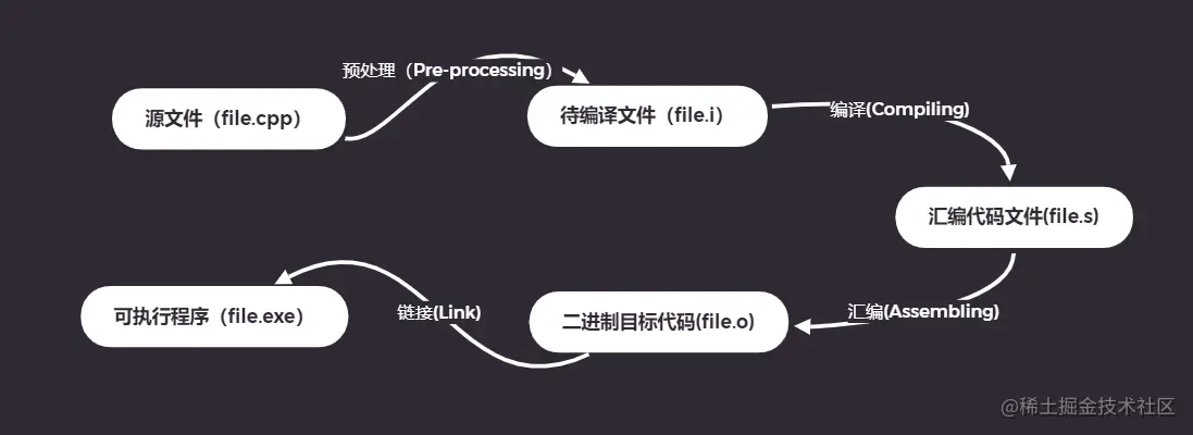 - g++ -S file.i (编译预处理文件)自动生成 .s 汇编代码文件