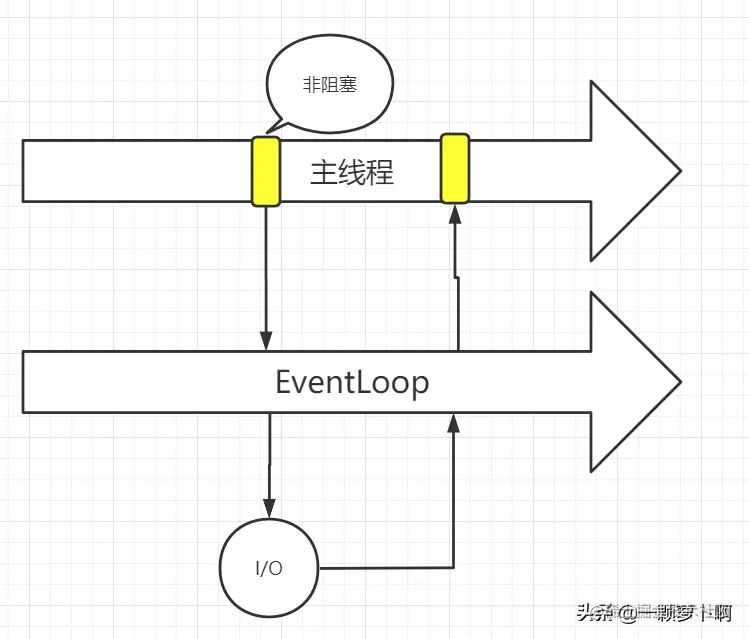 JavaScript也知道这样不行,于是就设置了两个线程,一个线程还是处理主程序,一个线程就出来专门负责主程序和其它进程的通信,这个分出来的线程,就叫EventLoop。