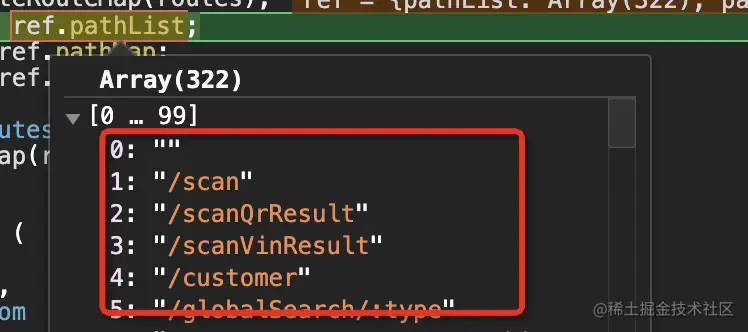 pathList:是个数组,存储着routes中所有的path(见下图6)