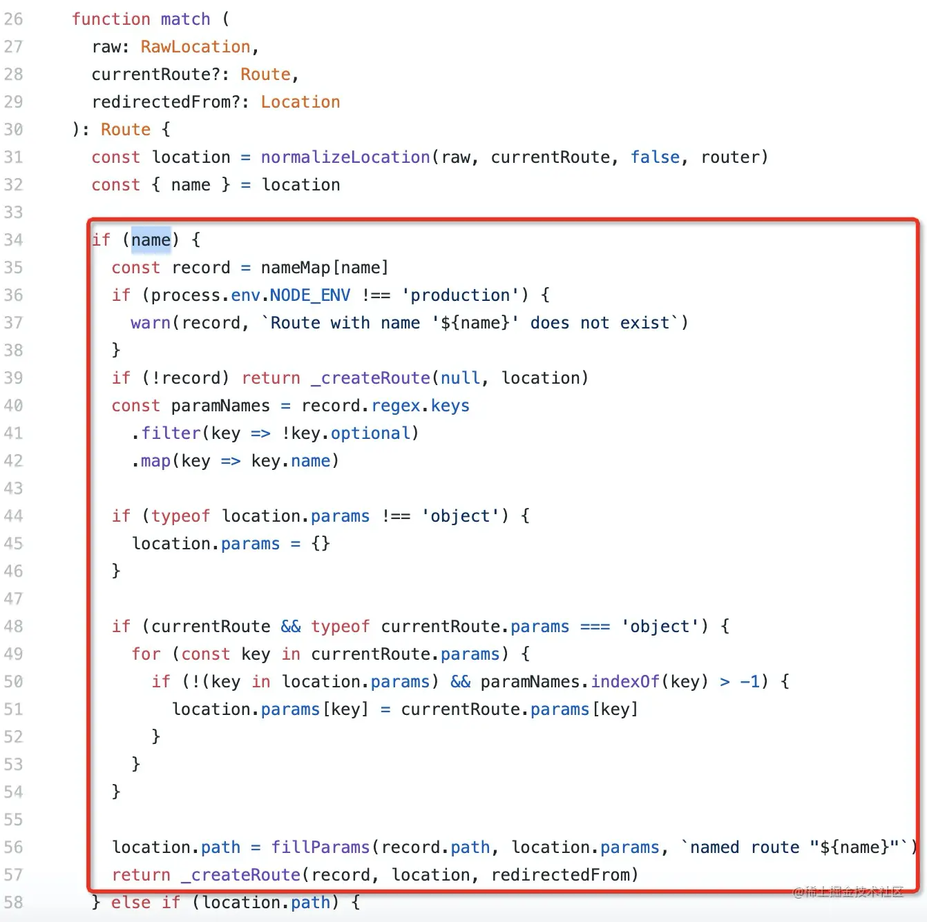 {name: 'newMaintainGuide', query:{isFromScan: true ... }, params: {mileage: 0}},调用方法后获得的location也是它,location.params = {mileage: 0}; - 通过nameMap + name,直接匹配到路由记录record(1.3.1 =>【4】路由匹配器matcher 中已解释了什么是nameMap);