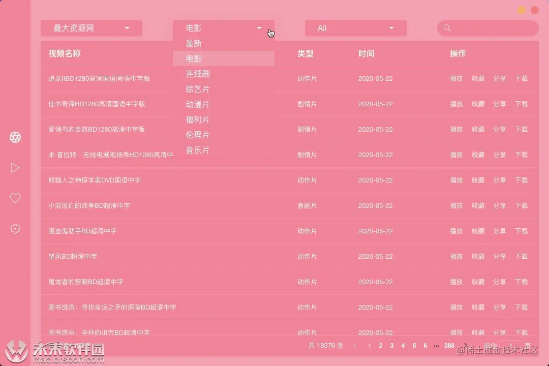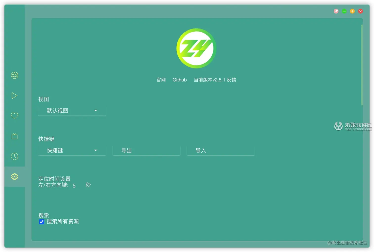 ZY Player - Mac用户必备一款全网视频播放器 mac 2020-10-05 352 阅读1分钟 ZY Player 是Mac用户必备的一款全网视频资源搜索及播放工具。内置12个视频网站源,支持历史播放记录以及播放进度,支持精简模式及修改透明度,支持最大资源网和OK资源网视频下载,支持演员名称搜索。好不好用,用过才知道! ZY Player v2.5.1中文版👈⏬