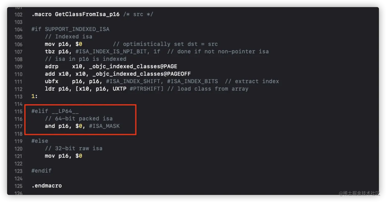and p12, p1, p11, LSR #48分为两段,首先计算p11, LSR #48,将p11进行逻辑右移48位,即可得到cache中的mask。然后将p1与运算mask的结果存在p12中。其中p1为sel(_cmd)。看CacheLookup源码中最开头的注释里。