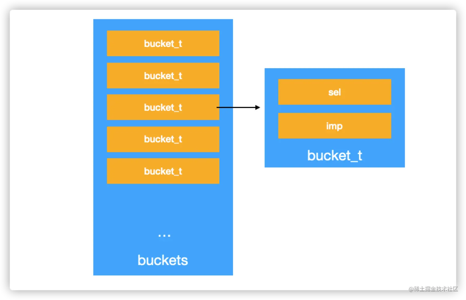为什么下标乘上16个字节?原因在于bucket_t中保存的是sel和imp,都为8个字节,一个bucket_t就是16字节,所以下标乘每个bucket_t的大小,就可以找到,下标所指的bucket_t。bucket_t等同于汇编中的bucket,bucket_t是C语言中的结构体,bucket是汇编的。