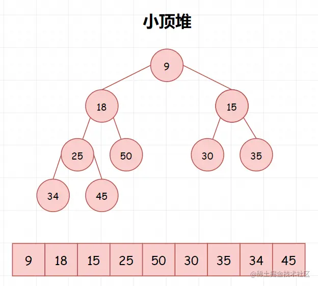 小顶堆,满足以下公式: