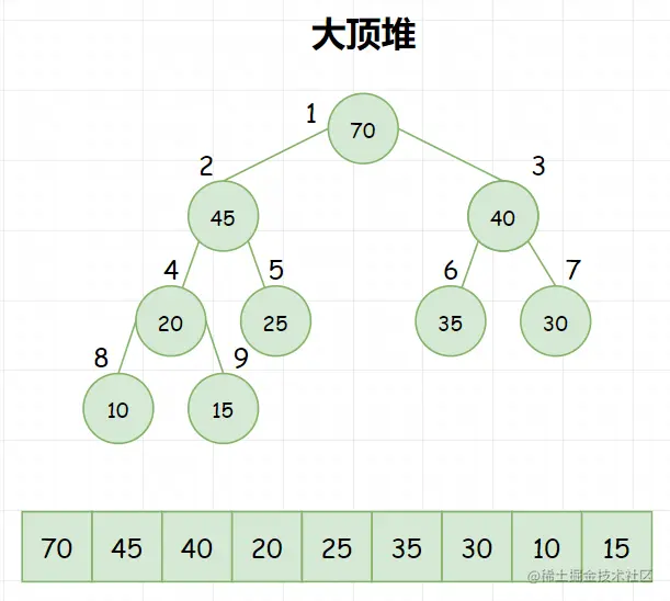 大顶堆,满足以下公式: