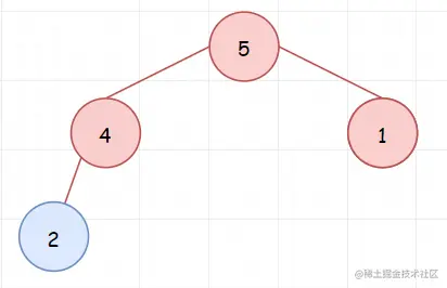 然后我们从下标 k 继续开始依次遍历数组的剩余元素。如果元素小于堆顶元素,那么取出堆顶元素,将当前元素入堆。在上面的示例中 ,因为2小于堆顶元素6,所以将2入堆。我们发现现在的完全二叉树不满足大顶堆,所以对其进行调整。