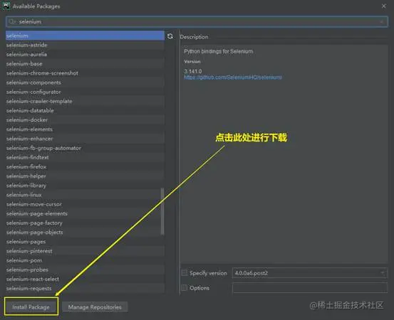 第五步,选中你需要下载的包,然后点击左下角的“Install Package”按钮,然后等待下载成功即可。