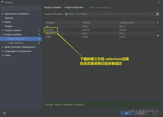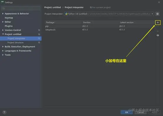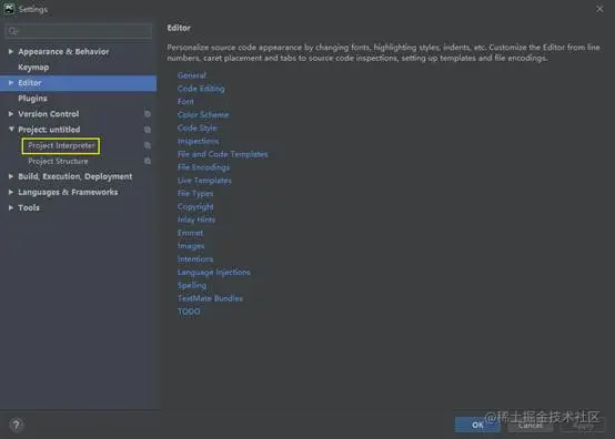 第二步,点击“Project:untitled”中的“Project Interpreter”,具体截图如下: