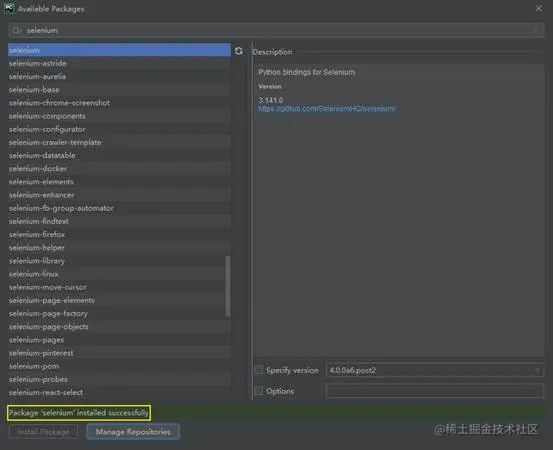 第六步,如果页面中提示如截图所示,并且“Install Package”按钮已经置灰,说明第三方包已经安装成功。