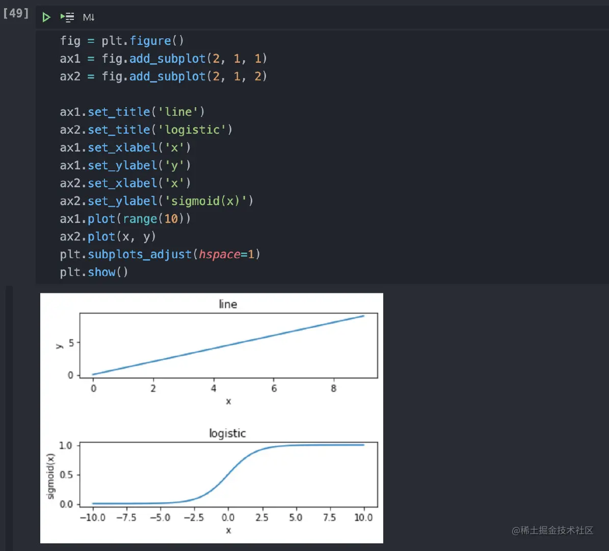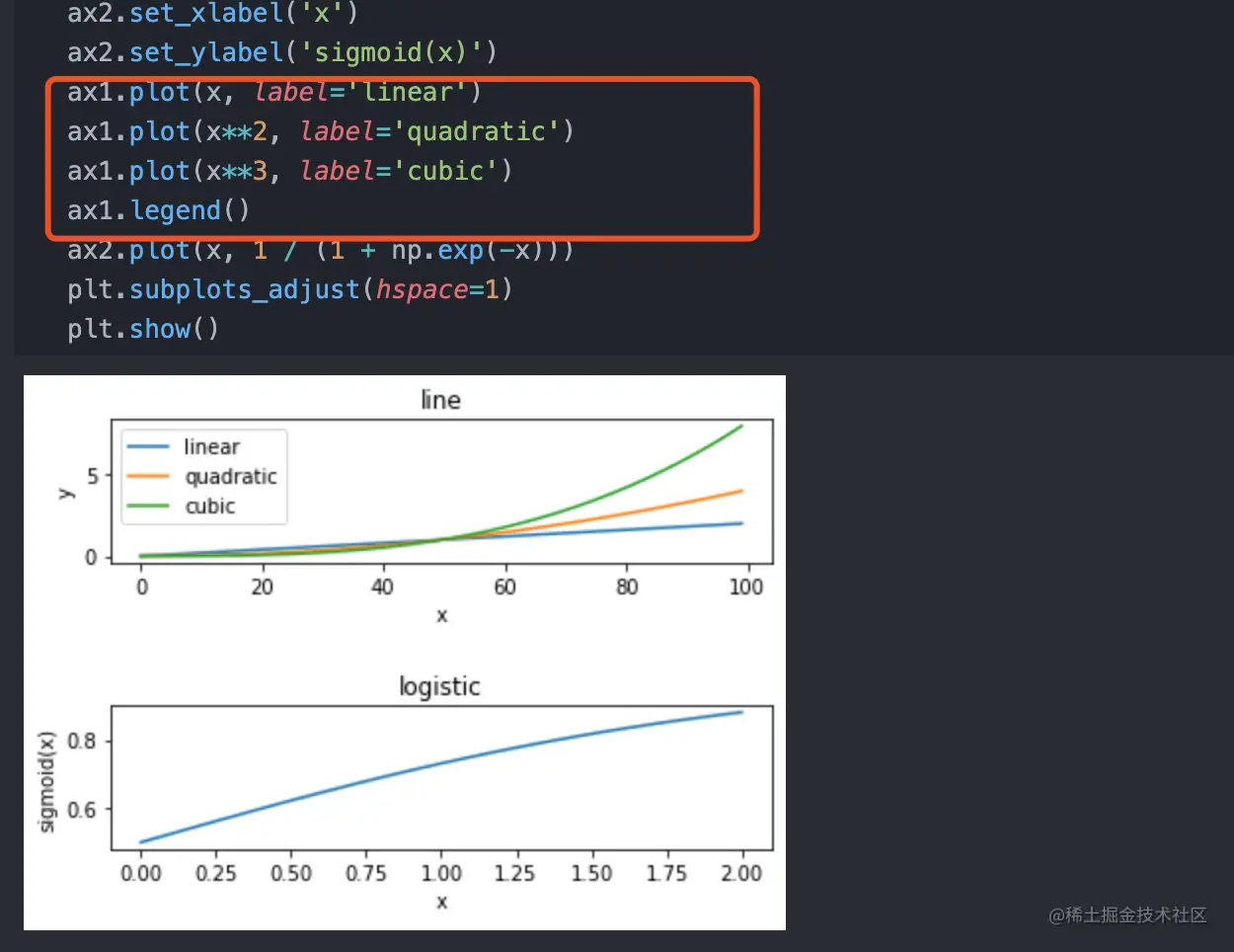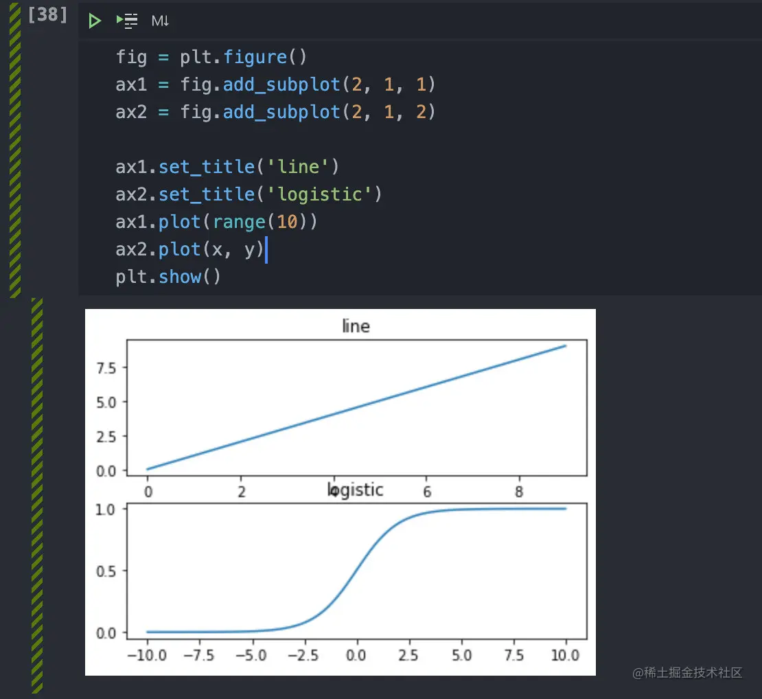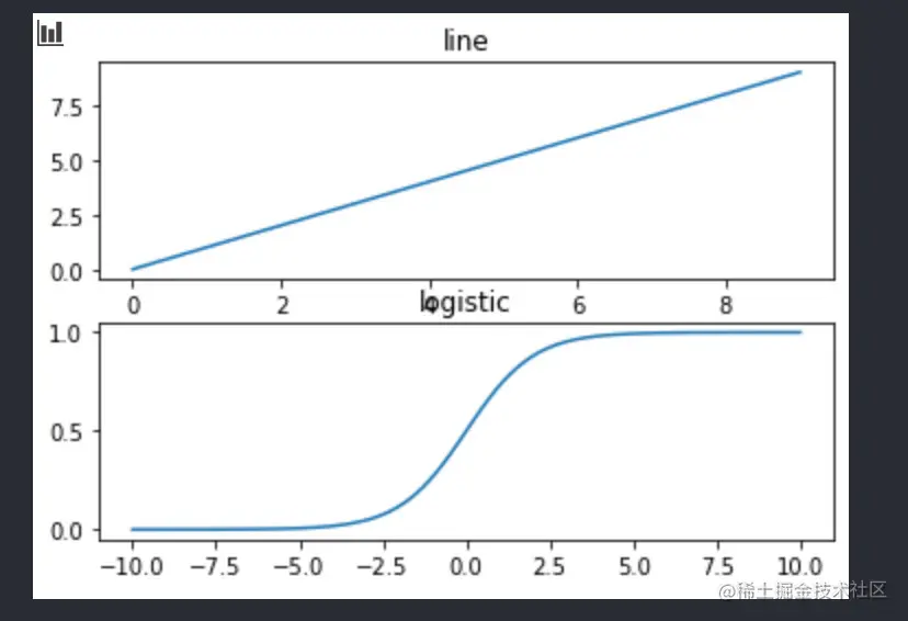 这里有一个小小的问题是两个图挨得太近了,导致logistic的标题和上一幅图的坐标轴重叠了。这个也很简单,我们可以通过subplots_adjust设置让子图之间分开一些。