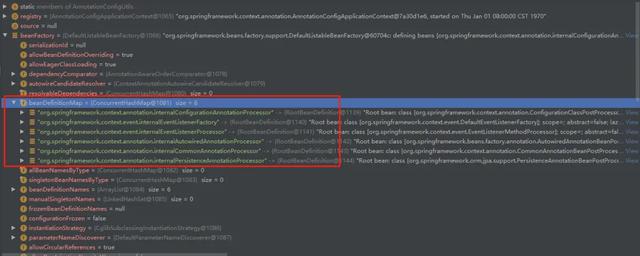 通过该方法之后, beanFactory中就存在了以上6个bd: