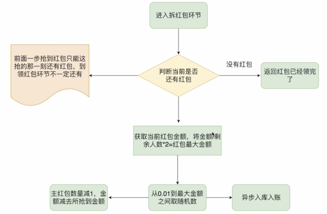 请求 Redis ,当剩余红包个数大于 0,红包个数原子递减,随机获取红包