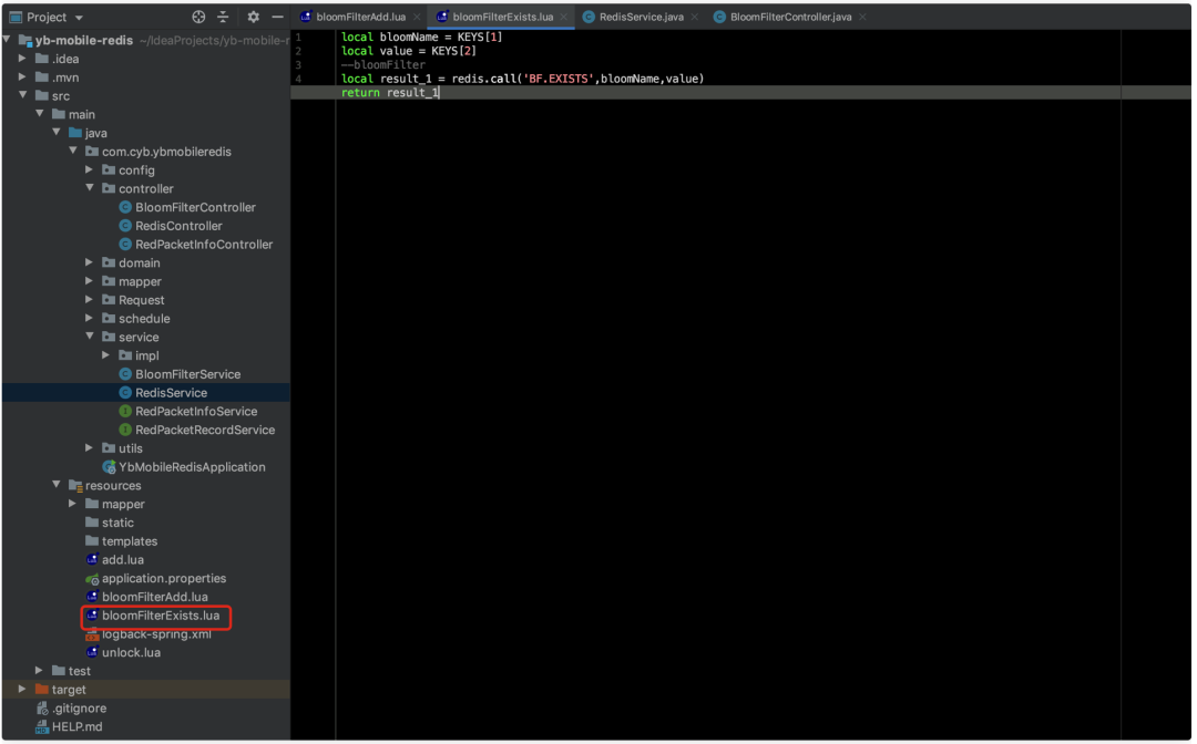 从指定名称的布隆过滤器获取key是否存在的脚本