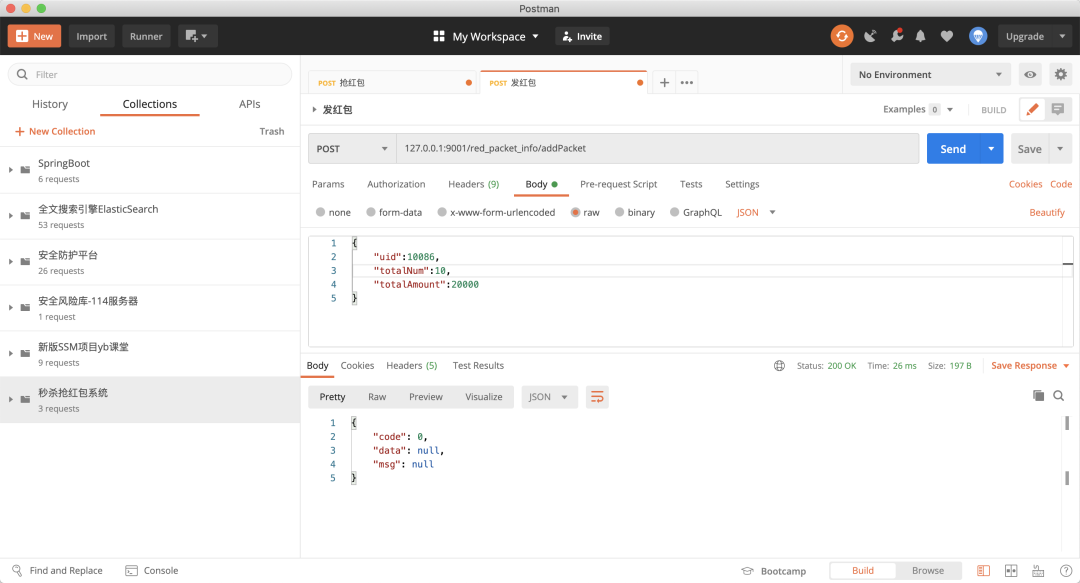 因为我发了 10 个红包,金额是 20000,使用压测工具,模拟50个请求,只允许前10个请求能抢到红包,并且金额等于20000。