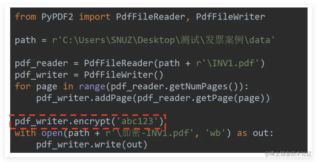因此只需要在相关操作完成后调用 pdf_writer.encrypt (密码)