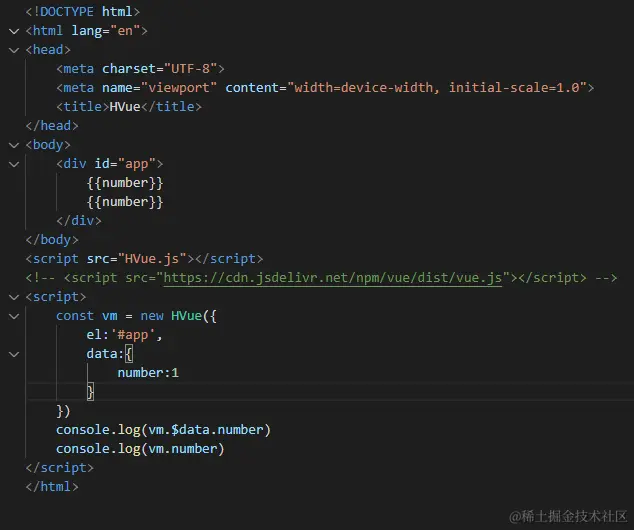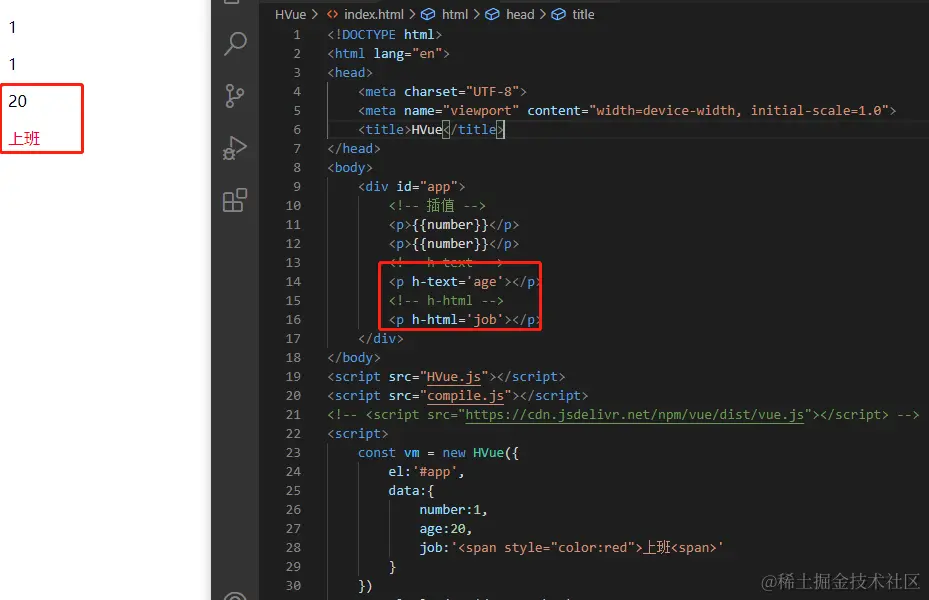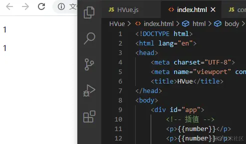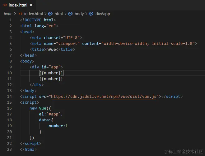 1.现在我们引入自己的hVue.js