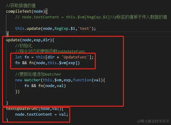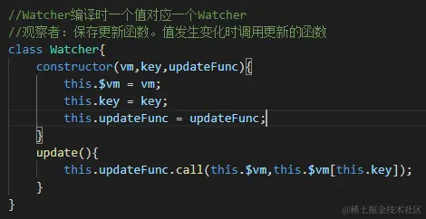 4. Watcher:执行更新函数update。