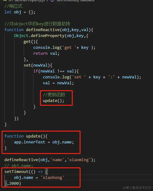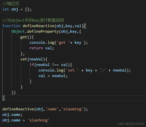 1. 对数据进行拦截,定义数据的get set