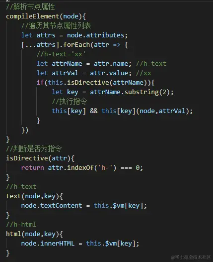 8.接下来处理元素 解析元素属性 创建对应属性的方法 h-text h-html为例
