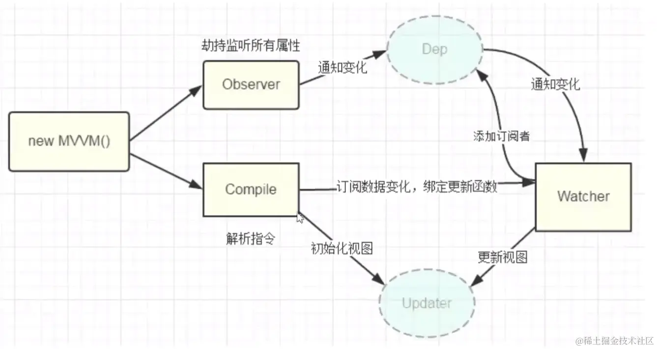 3. Compile:编译模板,初始化视图,收集依赖(Watcher创建)。