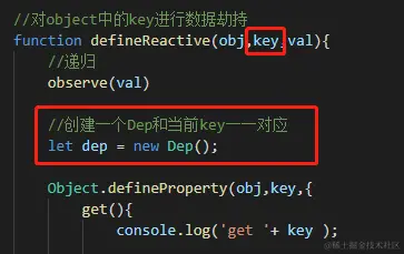 13.何时创建Dep,之前说了一个key对应一个Dep,所以我们在数据劫持前创建