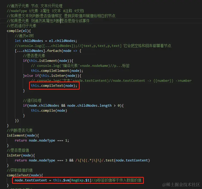 7.遍历子元素 节点 文本分开处理 首先我们先处理文本节点让插值{{}}显示到视图中
